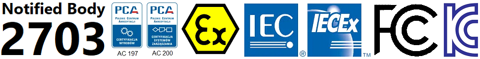 Dla naszych Klientów – zwłaszcza działających na rynkach pozaeuropejskich – oferujemy certyfikację wyrobów: wg standardów FCC (USA i Kanada), na znak zgodności KC (Korea i kraje azjatyckie), IECEx dla wyrobów w wykonaniu przeciwwybuchowym i IECEE-CB (urządzenia elektryczne nN) oraz na potrzeby Euro-Azjatyckiej Unii Celnej EAC.