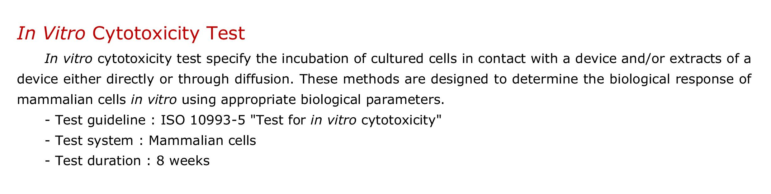 W naszych laboratoriach wykonujemy następujące badania i testy wyrobów medycznych zgodnie z normami serii ISO 10993: