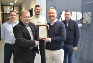 W dniu 7 lutego 2023 roku, w siedzibie APS Energia S.A. uroczyście wręczyliśmy pierwszy, zarejestrowany już w bazie PTPiREE Certyfikat Sprzętu (NC RfG) dla falowników nN współpracujących z magazynami energii oraz ogniwami paliwowymi. Ze strony producenta certyfikat odebrał Prezes Zarządu Piotr Szewczyk.